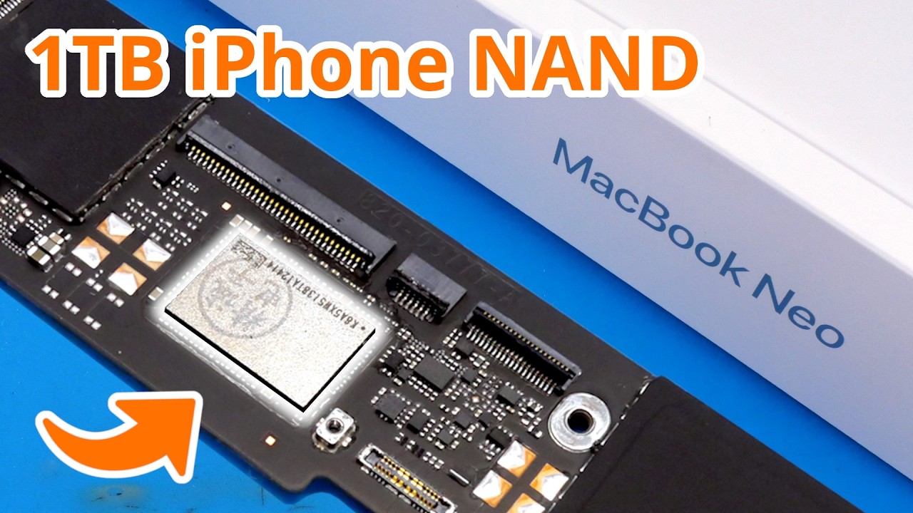After a few weeks of waiting, I finally received the 1TB NAND I needed to attempt to upgrade a MacBook Neo, and it ended up working without a hitch! This particular NAND model (K8A5) is most commonly used in the 1TB config of the iPhone 16 Pro, but works in the Neo as well! pic.twitter.com/hAODopQSUq