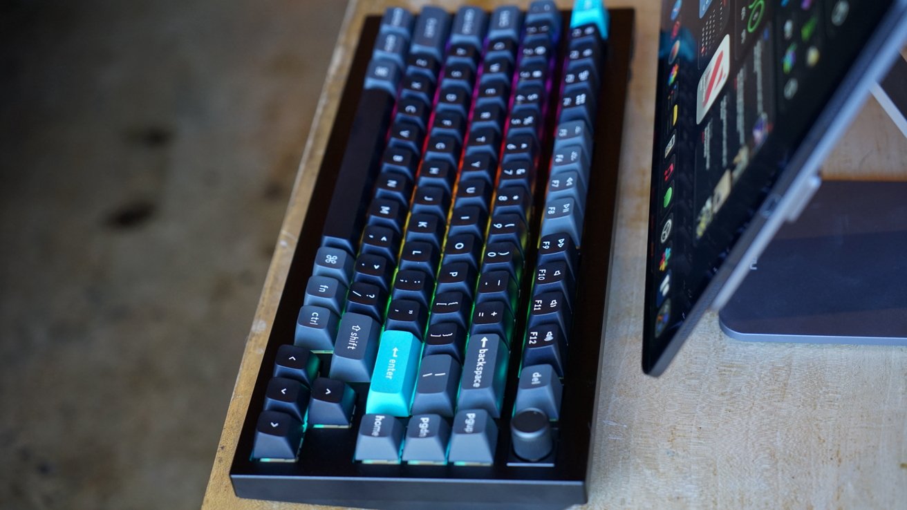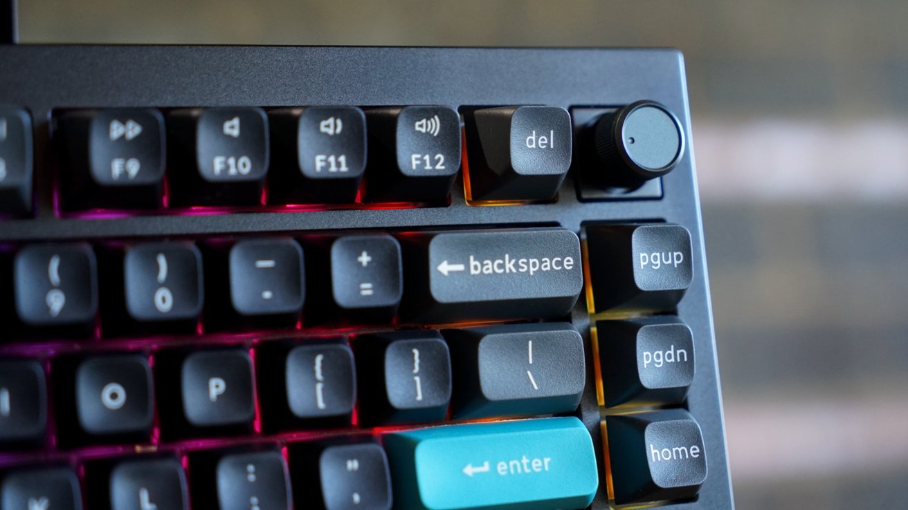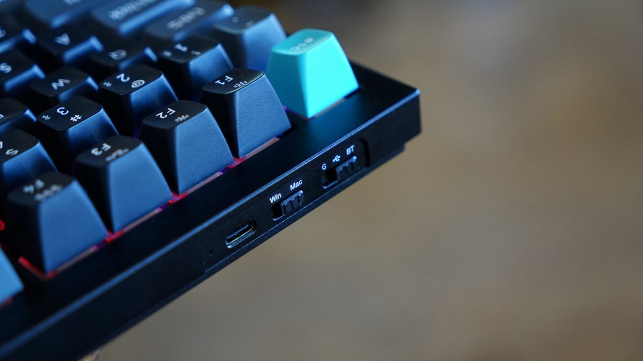 I stuck with my usual preference of dark keycaps with Keychron's splash of gray and blue. The RGB backlight continues to shine through bottom-facing LEDs with 22+ combinations.