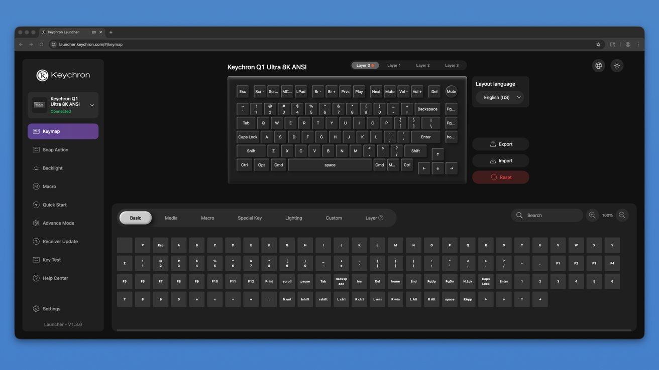 If you're working on newer Macs and PCs, go ahead and switch over to 8K. This is done via the Keychron launcher tool that's accessible via the web on a Chrome, Edge, or Opera browser.
